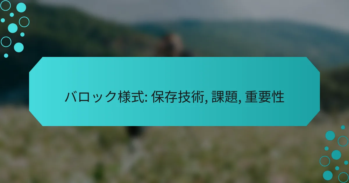 バロック様式の保存技術は、17世紀から18世紀にかけての芸術作品や建築物を保護し、後世に伝えるための重要な方法です。物理的劣化や環境要因などの課題に直面しながらも、これらの技術は文化的アイデンティティを維持し、歴史的価値を次世代に伝える役割を果たします。