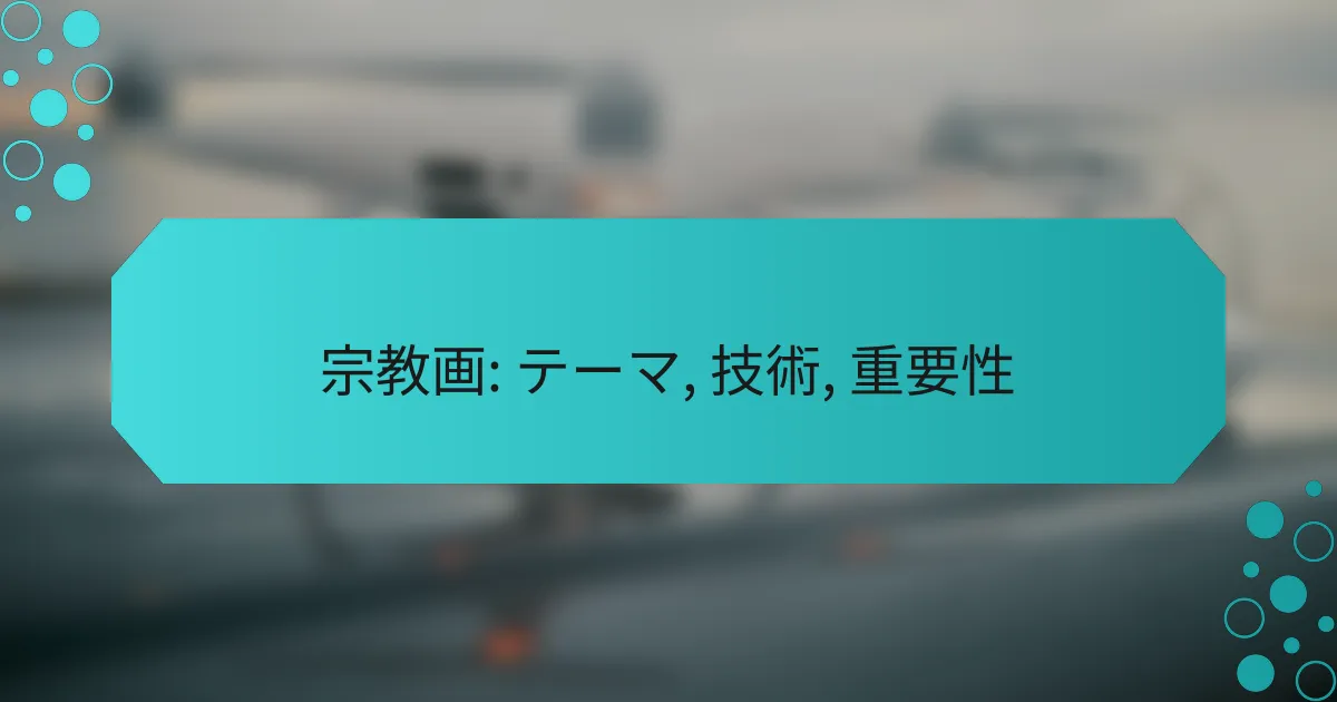 宗教画は、特定の技術的特徴を持ち、視覚的に信仰や教義を表現します。これらの特徴には、使用される絵画技法、色彩の選択、光と影の扱いが含まれ、作品のメッセージを強化します。